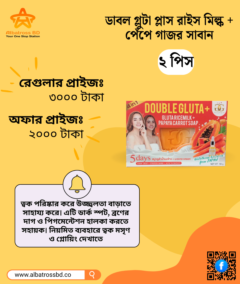ডাবল গ্লুটা প্লাস রাইস মিল্ক + পেঁপে গাজর সাবান ২ পিস